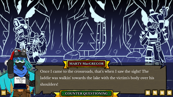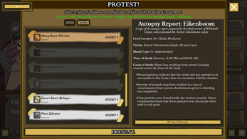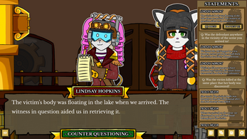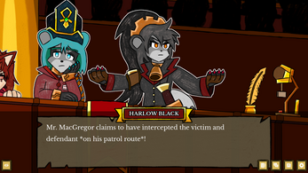 The Clockwork Spire is a game where you play as Harlow Black, a defence attorney in the steampunk-fantasy citadel of Drainsbury. This game will take you through four murder cases in which she was hired to defend the person accused of being its perpetrator, leading her on a journey of uncovering the often-times tragic and bitter tales that preceeded each crime.